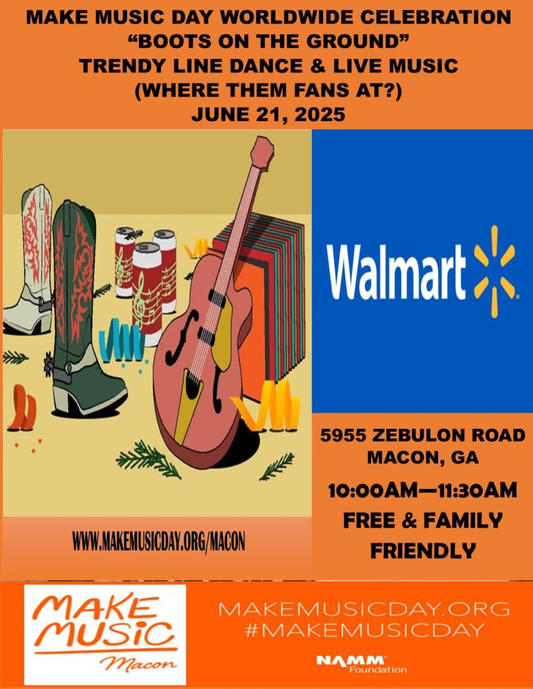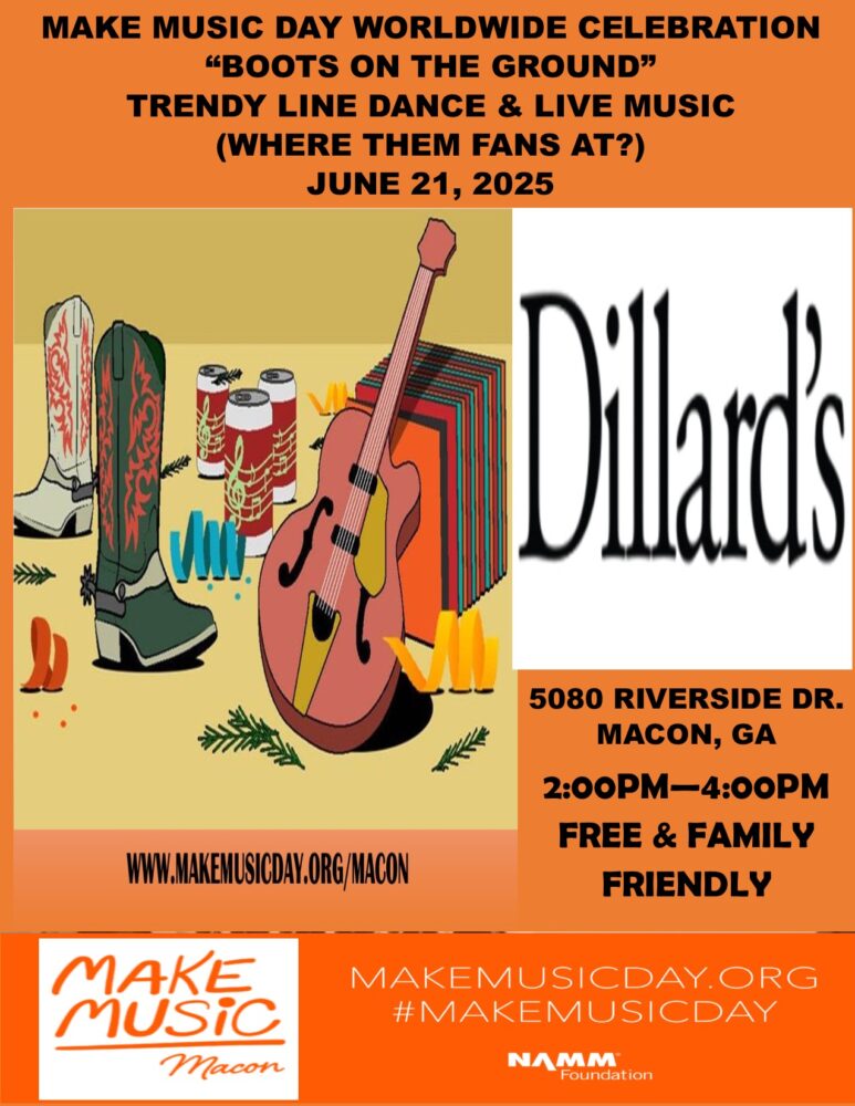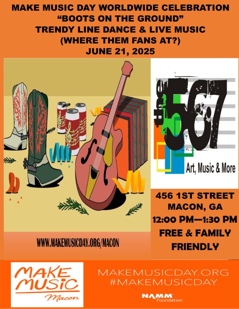 The theme for Make Music Day Macon on June 21 is all about play and fun. Feel the Summer Vibes and let’s thrive! Let’s put our “Boots On The Ground!”