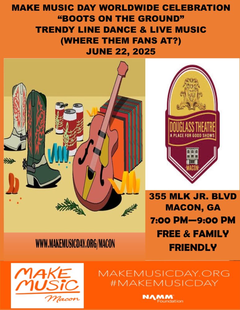 MAKE MUSIC DAY MACON “BOOTS ON THE GROUND” TRENDY LINE DANCE AND LIVE MUSIC BOOGIE!
